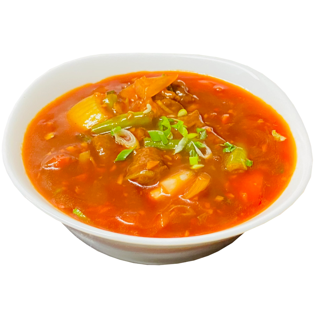 Куриное филе, лук, фасоль в остром чесночном соусе
