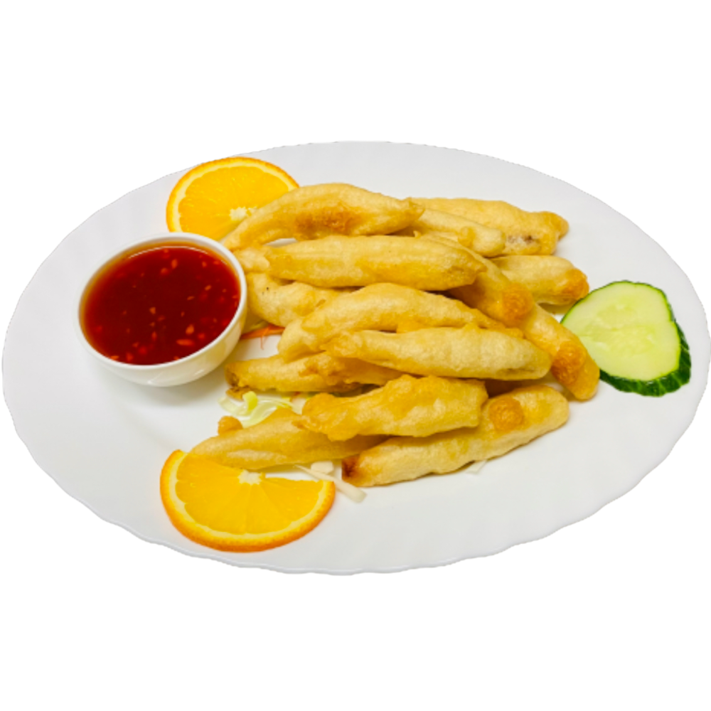Kuldseks praetud kana serveeritud küüslaugukastmega